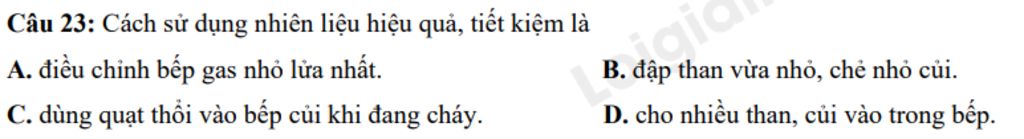 Câu `23:` Cách sử dụng nhiên liệu hiệu quả, tiết kiệm là :