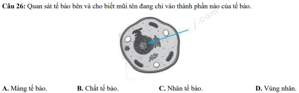 Câu `26:` Quan sát tế bào bên và cho biết mũi tên đang chỉ vào thành phần nào của tế bào.