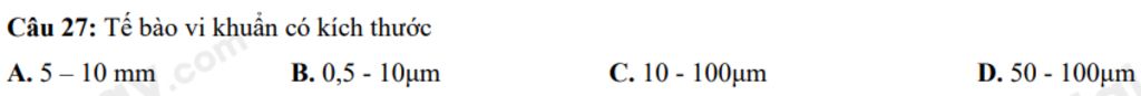 `@` Tế bào vi khuẩn có kích thước `0,5-10μm`