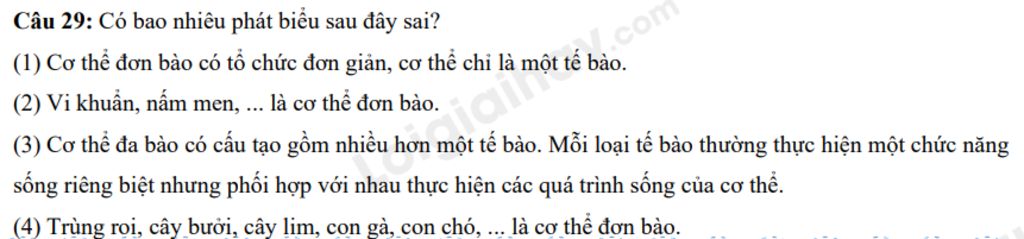 Câu `29:` Có bao nhiêu phát biểu sau đây sai?