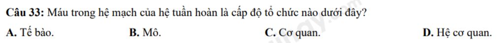Câu 33: Máu trong hệ mạch của hệ tuần hoàn là cấp độ tổ chức nào dưới đây?