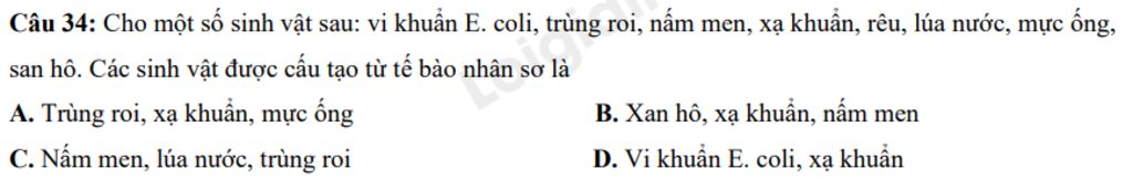 `→` Vì vi khuẩn và xạ khuẩn là sinh vật nhân sơ còn lại là sinh vật có tế bào nhân thực; đơn bào và đa bào.