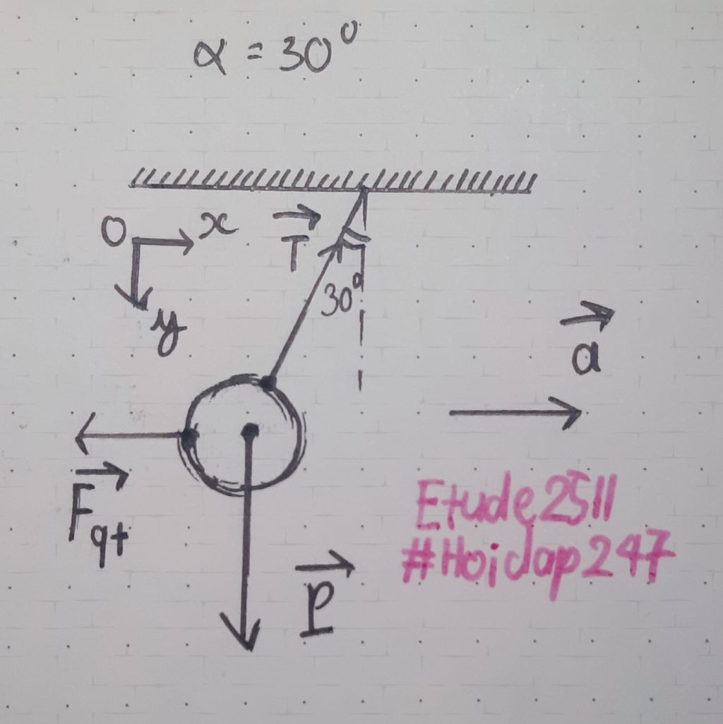 $\Leftrightarrow a=\dfrac{T\sin\alpha}{m}=\dfrac{\dfrac{2\sqrt{3}}{3}\cdot\sin30^o}{0,1}=\dfrac{10\sqrt{3}}{3}~(m/s^2)$