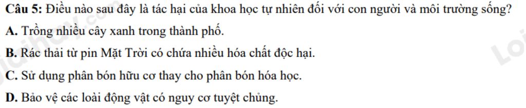 `=>` vì Rác thải từ pin Mặt Trời có chứa nhiều hóa chất độc hại nên nó là tác hại của khoa học từ nhiên đối với đời sống con người