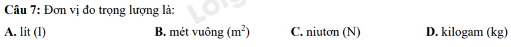 `-` Lít `(l)` là đơn vị đo thể tích, mét vuông `(m^2)` là đơn vị đo diện tích, kiligam `(kg)` là đơn vị đo khối lượng.
