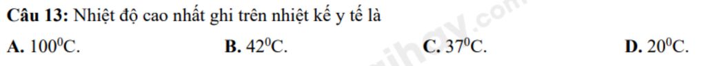`-` Nhiệt độ cao nhất ghi trên nhiệt kế y tế là `42^oC`