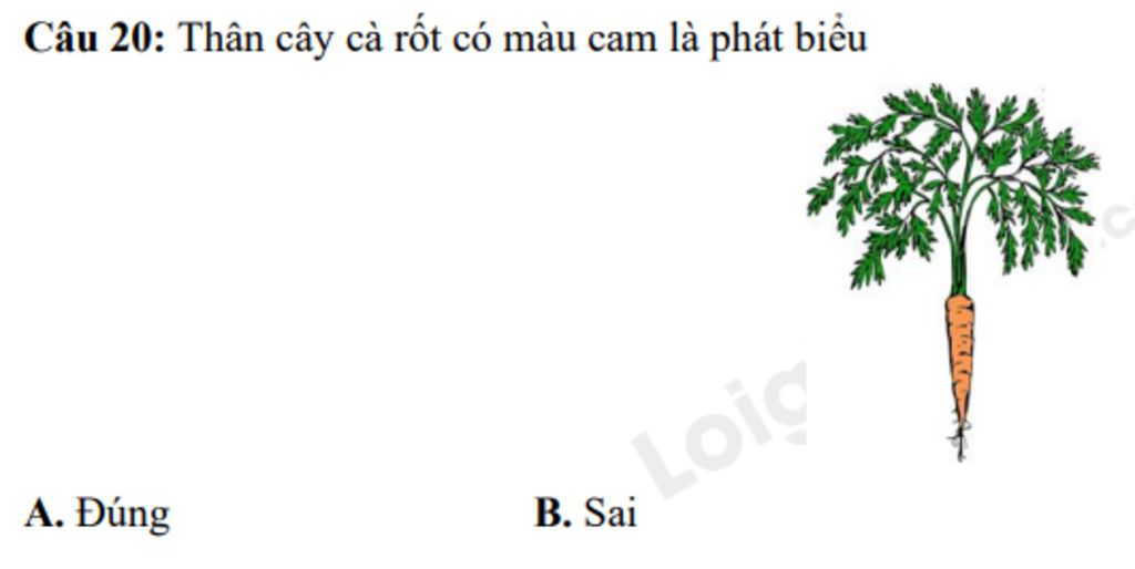`->` Sai vì thân cây cà tốt thì có màu xanh, rễ có màu cam.