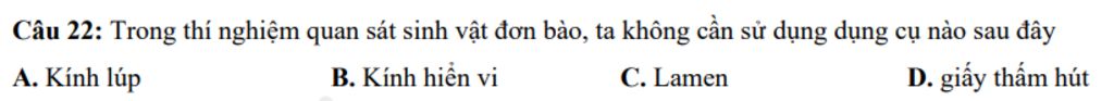`→` Trong thí nghiệm quan sát sinh vật đơn bào, ta không sử dụng dụng cụ giấy thấm hút.