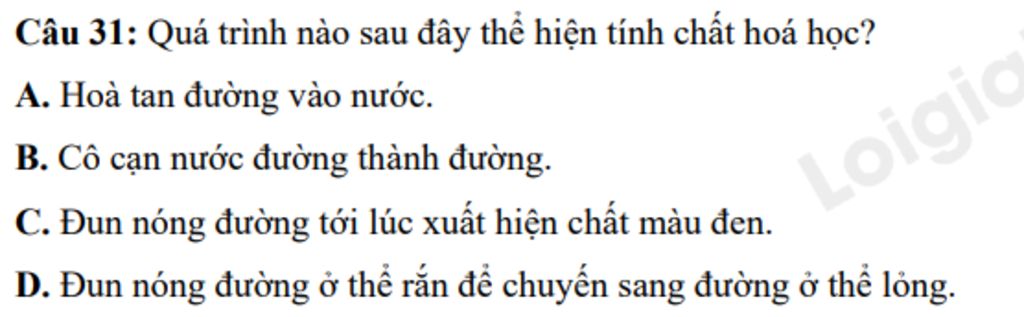 `=>` vì đường khi đun nóng có chất màu đen thì đường sẽ chuyển sang chất khấc khoogn còn là đường nữa