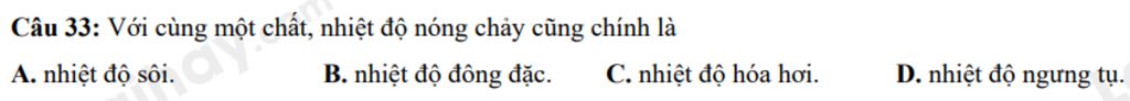 `→` Với cùng `1` chất nhiệt độ nóng chảy cũng chính là nhiệt độ đông đặc.