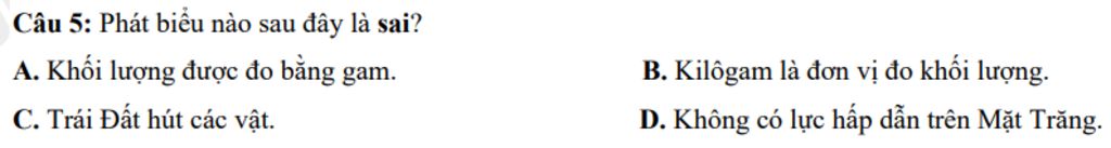 Câu 5: Phát biểu nào sau đây là sai?