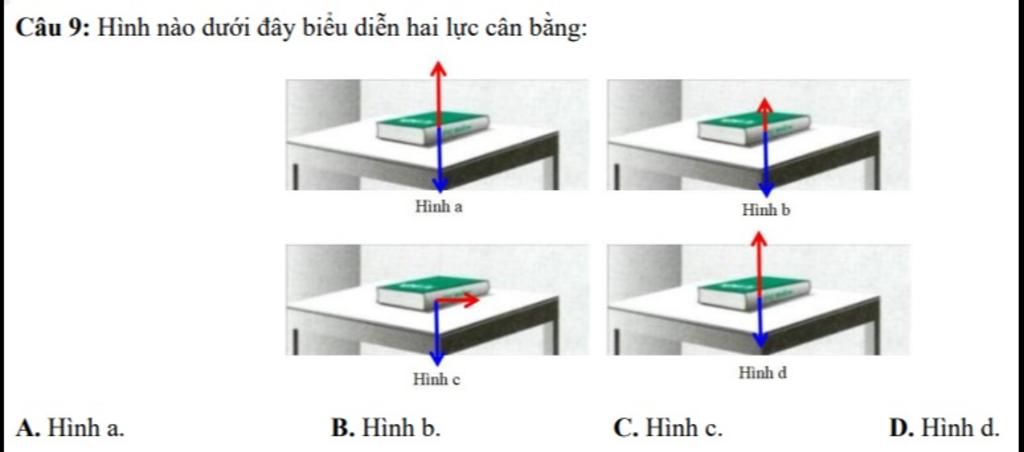 Câu `9:` Hình nào dưới đây biểu diễn hai lực cân bằng :