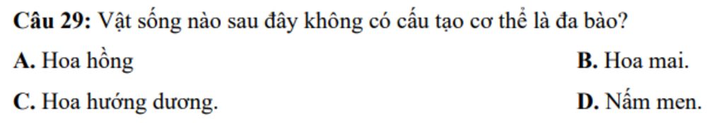 `->` Hoa hồng, hoa mai và hoa hướng dương đều có cấu tạo cơ thể là đa bào.