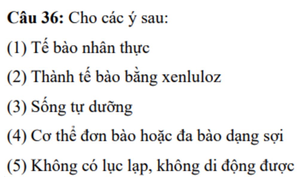Câu 36: Cho các ý sau: