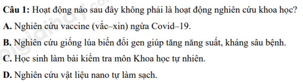 Câu `1:` Hoạt động nào sau đây không phải là hoạt động nghiên cứu khoa học?