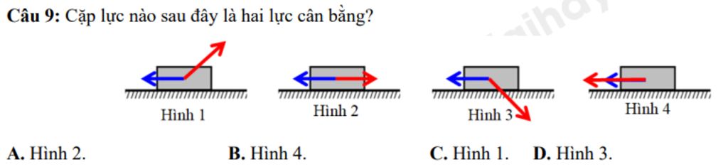 → Hai lực cặp cân bằng là hai lực cặp cùng tác dụng lên 1 vật, cùng phương và ngược chiều
