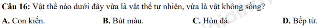 → Hòn đá vừa là vật thể tự nhiên vừa là vật thể không sống
