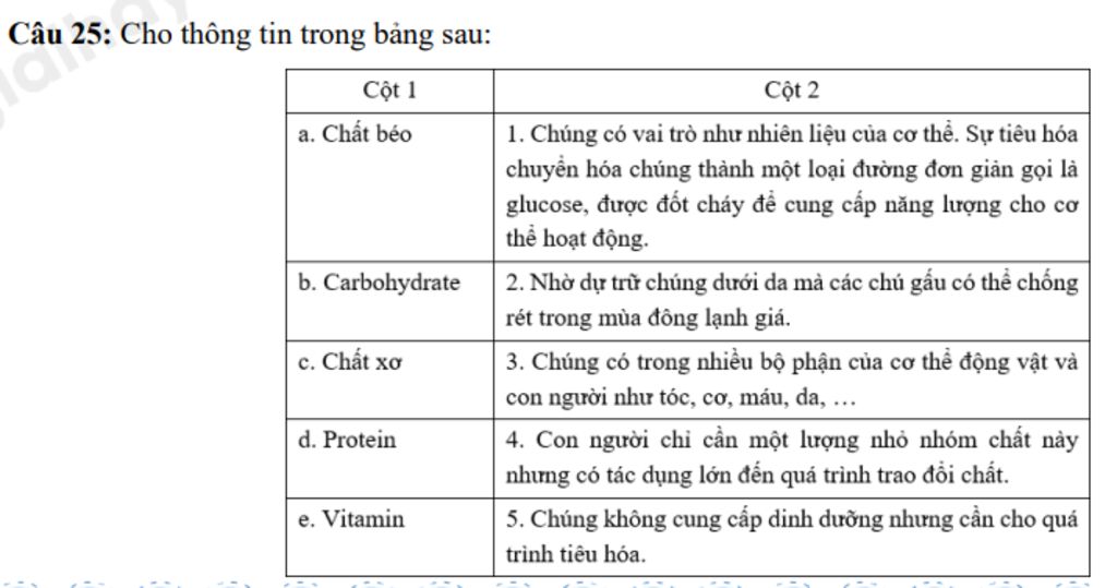 `=>` Chọn B. a - 2, b - 1, c - 5, d - 3, e - 4