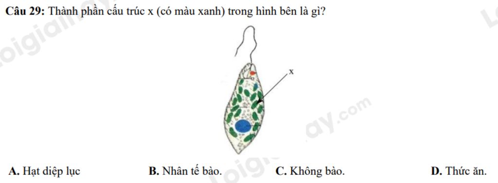 `→` Thành phần có cấu trúc có màu xanh là hạt diệp lục.