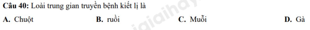 `->` Loài trung gian truyền bệnh kiết lị là ruồi