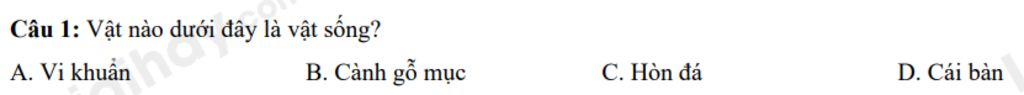 Câu `1: A`. Vi khuẩn
