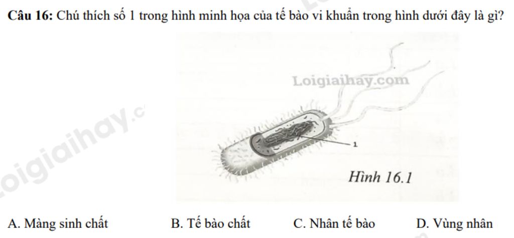 Câu 16: Chú thích số 1 trong hình minh họa của tế bào vi khuẩn trong hình dưới đây là gì?