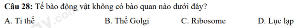 Vì tế bào lục lạp chỉ có ở thực vật không có ở động vật nnen chọn D. lục lạp