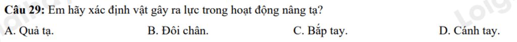 `-` Vật gây ra lực trong hoạt động nâng tạ là cánh tay.