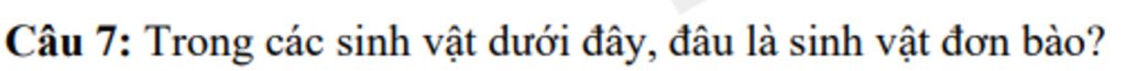 ⇒ Trong các sinh vật dưới đây, trùng biến hình là sinh vật đơn bào