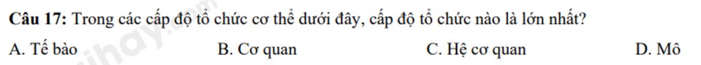 → Cấp độ tổ chức hệ cơ quan là lớn nhất