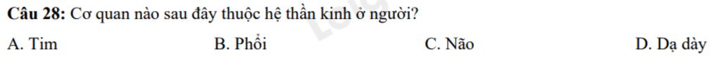Câu 28: Cơ quan nào sau đây thuộc hệ thần kinh ở người?