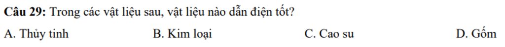 ⇒ Trong các vật liệu sau, vật liệu kim loại dẫn nhiệt tốt
