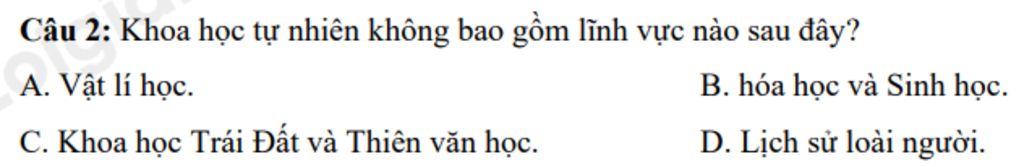 `=>` vì KHTN gồm jhoa học Trái Đất và Thiên văn học, còn lại thì cũng có đpá án đùng nhưng cũng có cái sai.