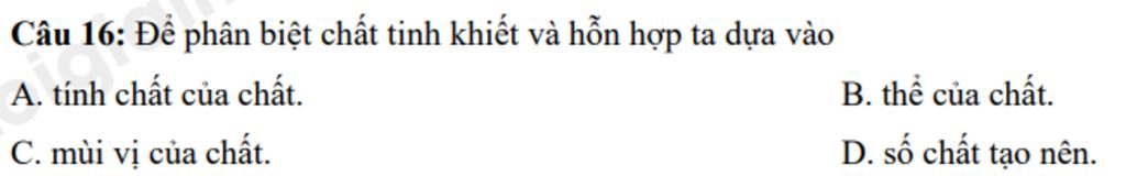 `->` Để phân biệt chất tinh khiết và hỗn hợp ta dựa vào số chất tạo nên gồm: