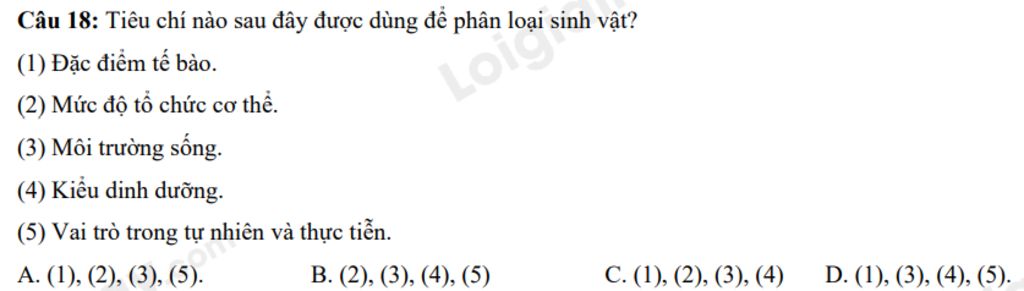 Câu 18: Tiêu chí nào sau đây được dùng để phân loại sinh vật?