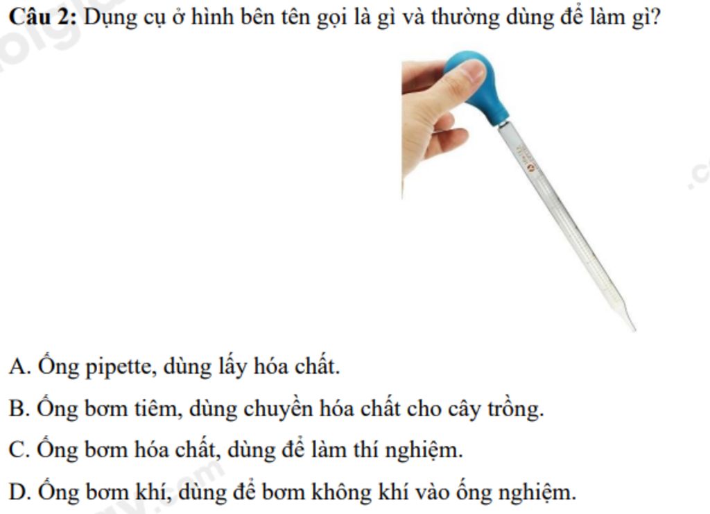 `-` Dụng cụ ở hình bên gọi là : ống pipette và thường dùng để lấy hóa chất.