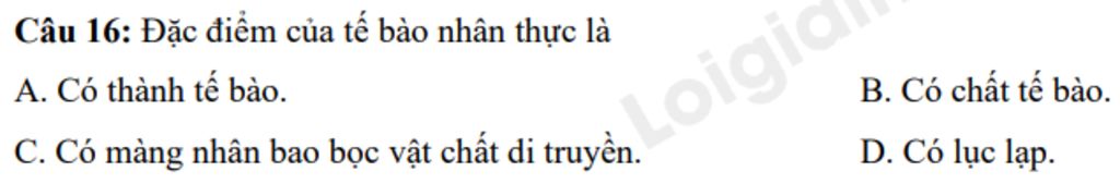 `->` Đặc điểm của tế bào nhân thực là có màng nhân bao bọc vật chất di truyền.
