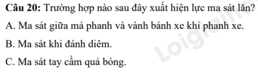 Ma sát lăn là lực ngăn cản lại sự lăn của một bánh xe hay các vật có dạng hình tròn trên mặt phẳng bởi sự biến dạng của vật thể và của bề mặt