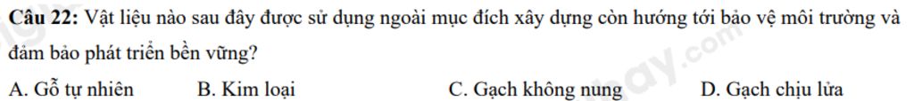 `=>` gạch không nung có khả năng tái chế và rất an toàn với môi trườn xung quanh `=>` chọn `C`