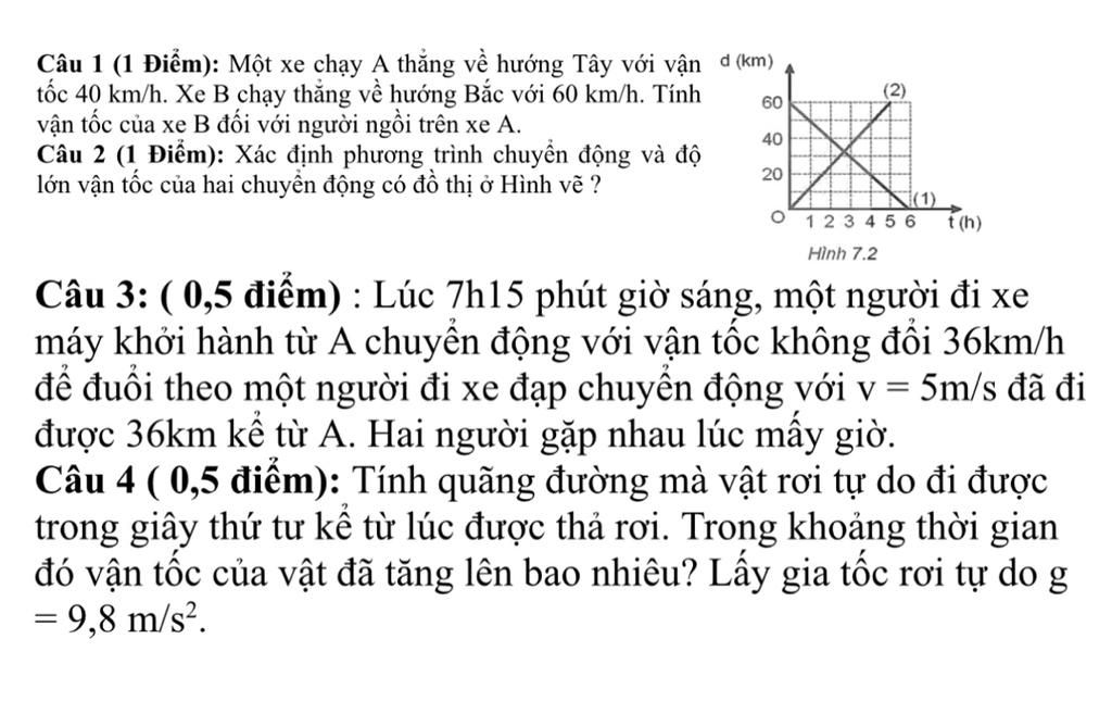 \(v = \sqrt {v_A^2 + v_B^2} = \sqrt {{{40}^2} + {{60}^2}} = 20\sqrt {13} \left( {km/h} \right)\)