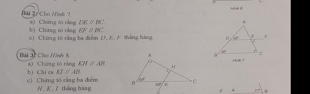 ⇒EF// BC ( dấu hiệu nhận biết hai đường thẳng song song)