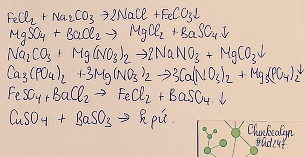 `Na_2CO_3+Mg(NO_3)_2 → 2NaNO_3 + MgCO_3↓`