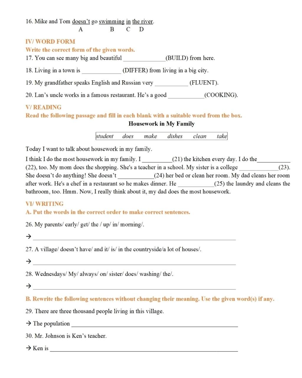 `27.` A village doesn't have a lot of houses and it is in the countryside.