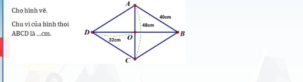 `*` Công thức tính chu vi hình thoi: `P=` cạnh `×4`