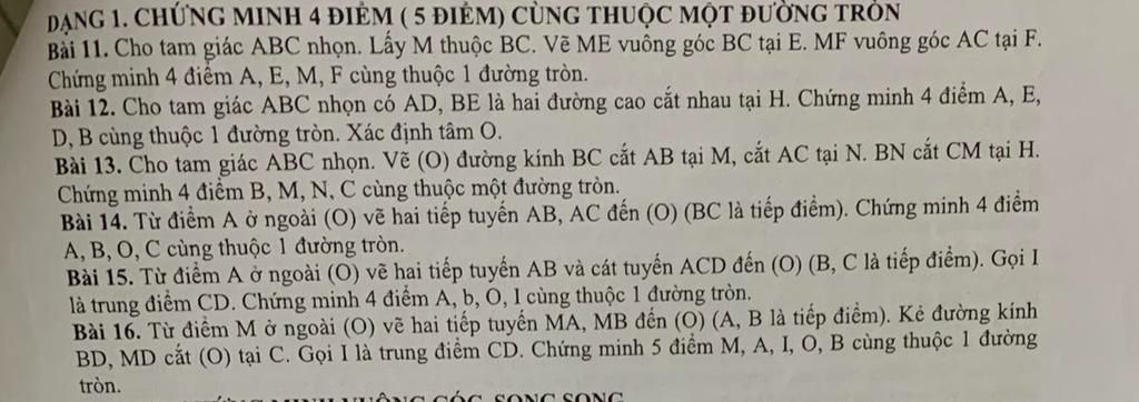 DẠNG 1. CHỨNG MINH 4 ĐIỂM ( 5 ĐIỂM) CÙNG THUỘC MỘT ĐƯỜNG TRÒN