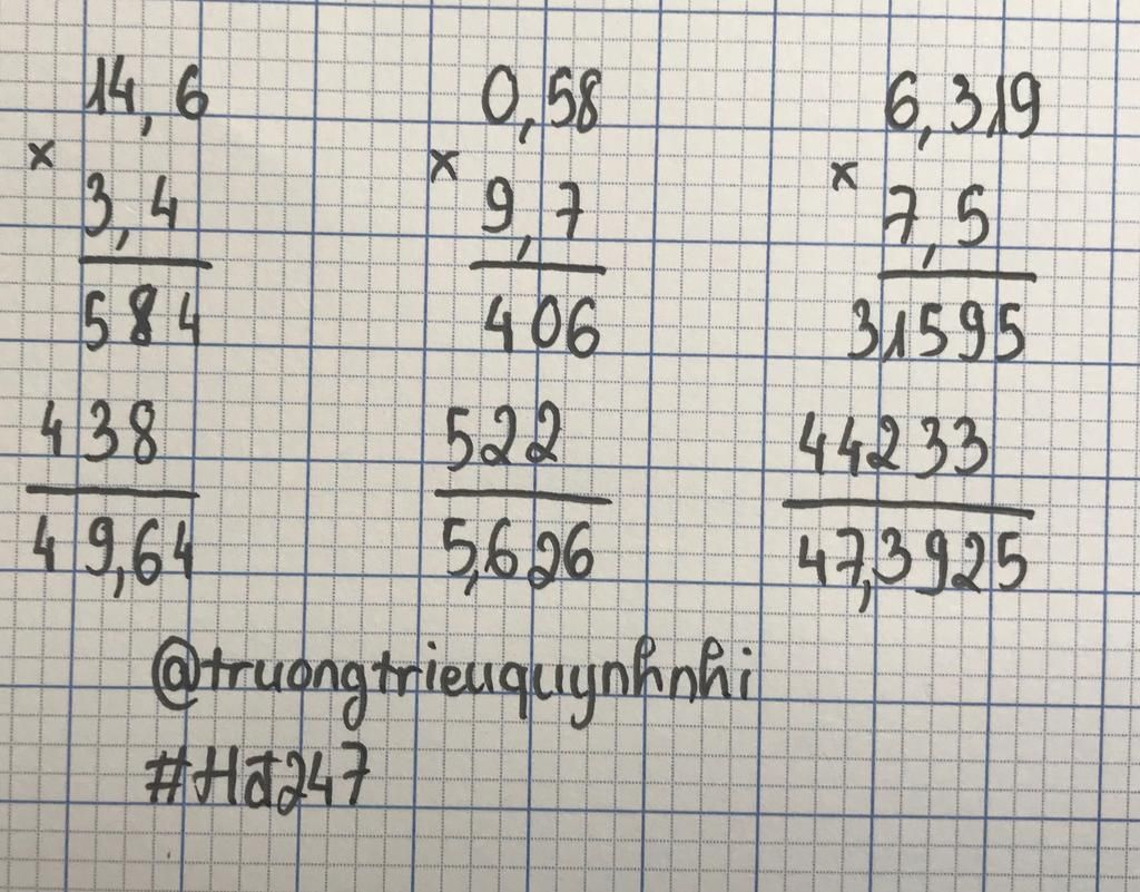 Để đặt dấu phẩy vào kết quả, ta đếm số sau dấu phẩy của 2 thừa số