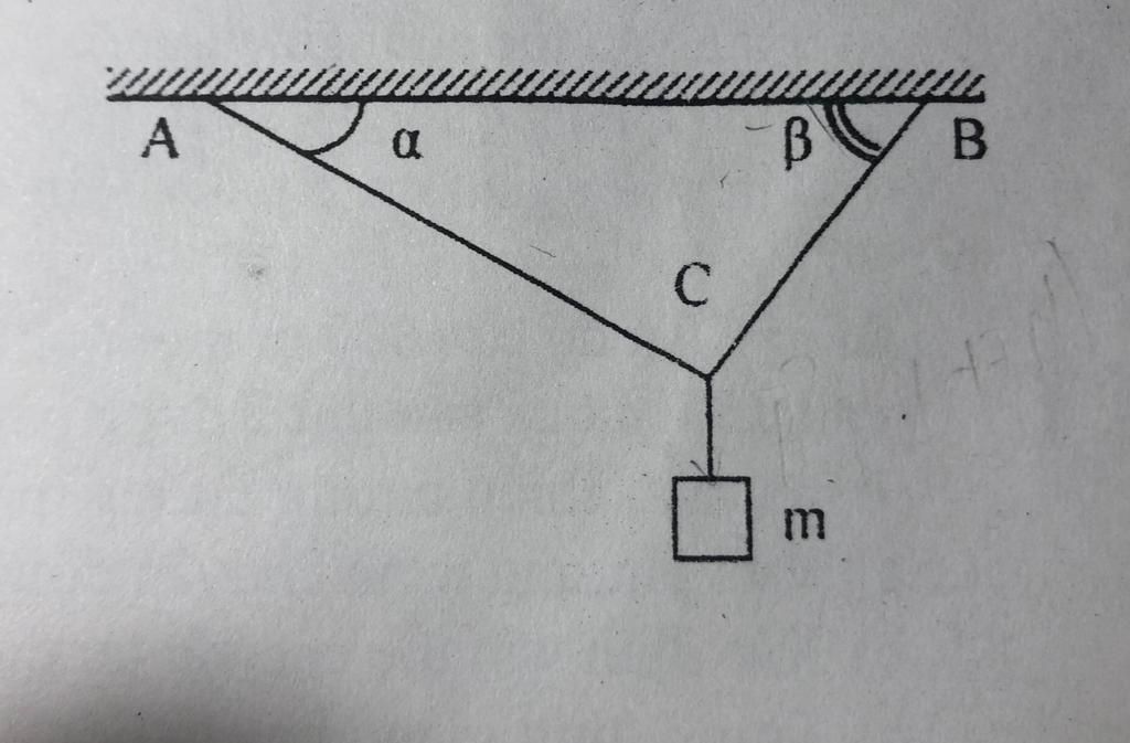 {T_{AC}}.\cos \alpha = {T_{BC}}.\cos \beta \\