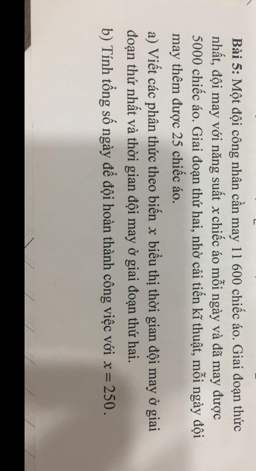 b) Thời gian đội may ở giai đoạn thứ nhất là: