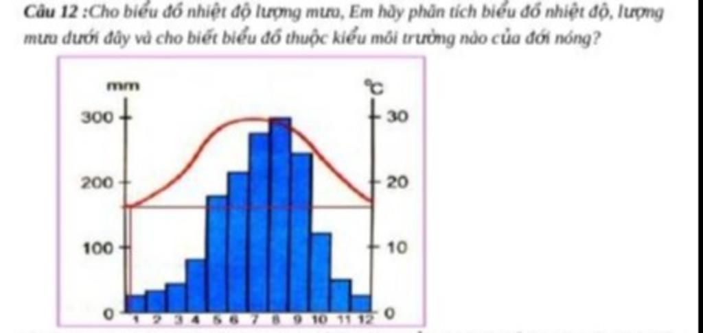Câu 12 : Cho biểu đồ lượng mưa. Em hãy phân tích biểu đồ nhiệt độ , lượng mưa dưới đây và cho biết biểu đổ thuộc kiểu môi trường nào của đới nóng ?