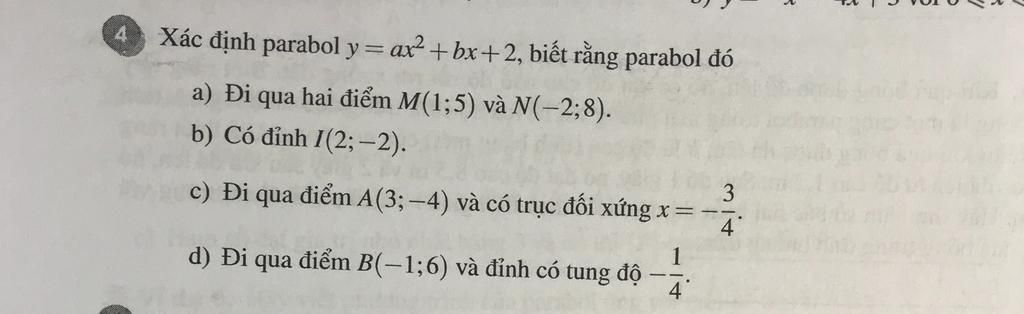 Xác định parabol y=ax2+bx+2, biết rằng parabol đó